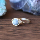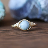 Aquamarine, the serene blue gemstone of the sea, has been cherished for centuries for its calming energy and clarity. As the birthstone for March, it symbolizes courage, mental clarity, and effective communication. This delicate Aquamarine solitaire ring is handcrafted in your choice of 14K gold-filled, sterling silver, or 14K rose gold-filled wire-making it a meaningful gift for birthdays, anniversaries, or anyone drawn to its tranquil beauty.