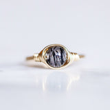 6mm beautiful and unique tourmalinted quartz stone. This bead is a mix of natural Tourmaline and Quartz. Simple, boho style design. Perfect simple ring for any occasion.