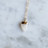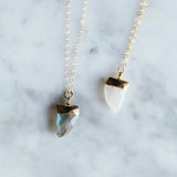 Our Eos Necklace is named after the greek goddess Eos, goddess of the dawn. A special reminder that light always comes after the darkness. An amazing moonstone pendant hung from a dainty gold chain.