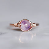 A very unique and beautiful Lavender Amethyst stone wrapped in our demi fine wire. Perfect boho style gemstone rings, with a simple and modern design.