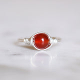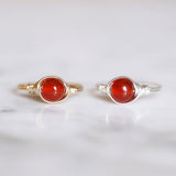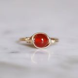 A handcrafted Carnelian solitaire ring, wrapped in your choice of 14k gold-filled wire, designed to ignite confidence and energy. Carnelian is revered for its vibrant sun-kissed hue, symolising motivation, courage, and success. Believed to bring protection and victory, this stone has been cherished troughout history.