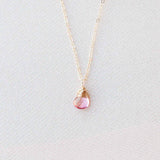 A dainty, sparkly and AAA quality pink topaz gemstone hung from a beautiful dainty chain, perfect touch to any outfit and a great gold layering necklace.
