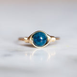 Genuine apatite gemstone wrapped in demi fine wire. Apatite is a beautiful deep aqua colored blue. A very