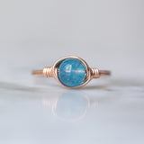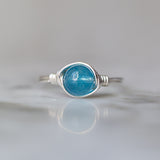 Say hello to your new favorite! Our Aqua Quartz ring evokes beauty and power with its vibrant blue hue and special meaning. Choose to have it wrapped in either gold or silver, making it a statement and perfect addition to any outfit.