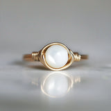 Genuine mother of pearl stone, with a dainty, yet beautiful demi fine metal wire band. Simple, boho style design. Perfect for any event, especially lovely for wedding jewelry!