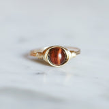 A striking red tiger's eye stone wrapped in the metal of your choice. Each gemstone ring is made to order, making them special and personalized just for you. Perfect for gift giving.